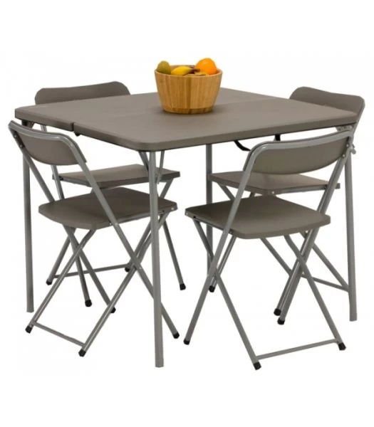 The Orchard Table and Chair Set is an excellent camping dining addition for family meals. Featuring a large table and four folding chairs, this set is the perfect accessory to your camping equipment whether you are enjoying breakfast or sitting down to a family meal on the campsite.