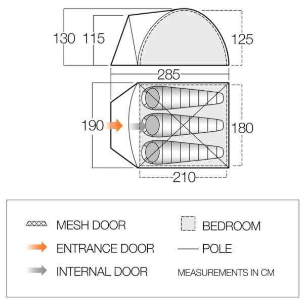- Inner First Pitch – Simple and quick to pitch. Allows the tent to be used without the flysheet in warm climates